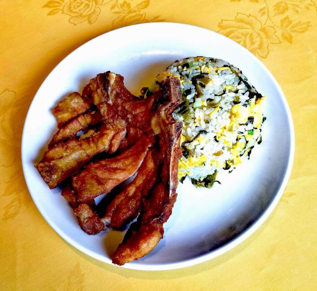 『華都飯店』は、お子様から大人まで幅広い世代に愛される中華料理店です。数あるメニューの中でも特に人気なのが、排骨(パイコー)高菜チャーハン。スペアリブの揚げ物であるパイコーの香ばしい風味と、高菜の塩味、そしてパラパラに炒められたチャーハンが見事に調和した一品です。