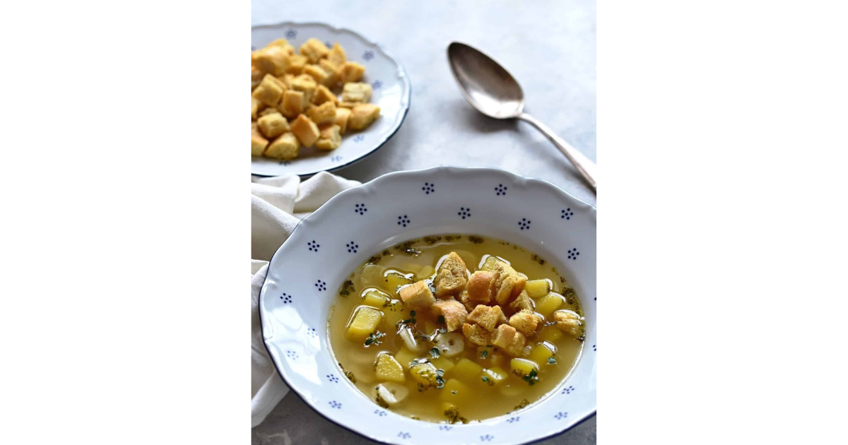 チェコの伝統的なにんにくスープ『チェスネチュカ(Česnečka)』は、家庭料理として親しまれ、レストランやパブでも定番メニューです。「チェスネク(Česnek)」がチェコ語でにんにくを意味し、その派生語であるチェスネチュカは、まさに「にんにくスープ」という意味。
