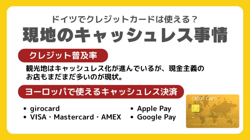 ドイツで現金を使わずに支払える決済方法は以下のようなものがあります。