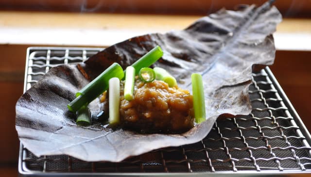 炭火でじっくり焼くと、味噌の香ばしさと朴葉のほのかな木の香りが食欲をそそります。もともとは山仕事をする人たちが山で簡単に焼いて食べたのが始まりで、ご飯のお供やお酒のおつまみにもぴったり。