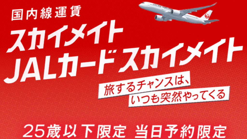 JALが提供している「スカイメイト」は、当日に空席がある場合に最大で60%の割引が適用される制度で、急な移動が多い学生にとって心強いサービスです。
