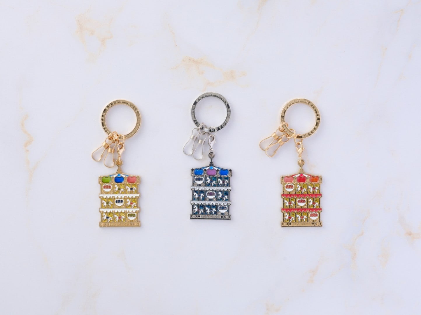 ハウステンボス内の人気アトラクション「スカイカルーセル」をモチーフにした「スカイカルーセル ステンドキーホルダー」は、縦約12cm・横約7cmのスタイルで、鍵やバッグに華やかさを添えます。
