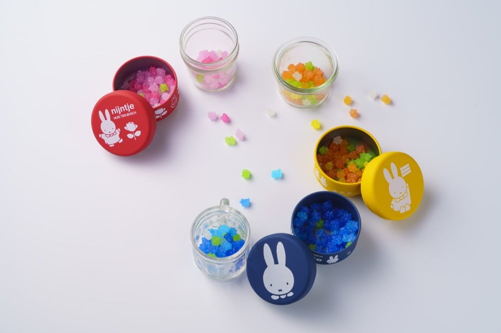「ミッフィー金平糖缶」は、ミッフィーがデザインされた手のひらサイズの缶に、缶の色とおそろいのカラフルな金平糖がぎっしり詰まった可愛らしいお土産です。価格も手頃で、自分用はもちろん、職場や友人への配り用としてもぴったり。
