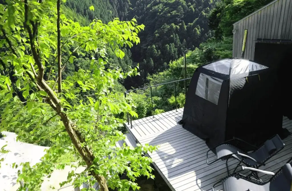 熱をしっかりと感じた後は、山の湧き水を引いた天然の水風呂へ。柔らかな肌触りと清涼感が特徴で、外気浴では鳥の声と風の音に包まれる“ととのう時間”を体験できます。