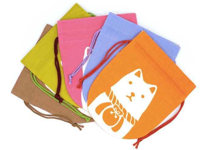 「おかげ犬巾着」は、かわいいおかげ犬がデザインされた巾着グッズ!まんまる顔のフォルムは、ずっと見ていても飽きません。また巾着を縛ると顔の雰囲気が変わるのも魅力です。