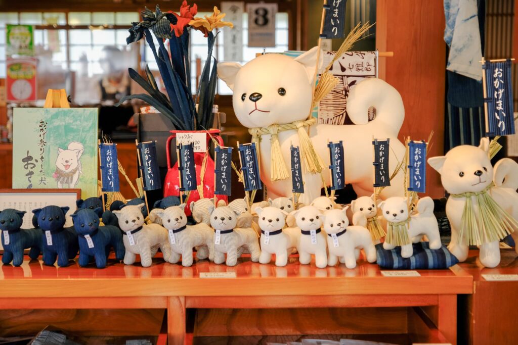 また、雑貨商品も人気のおかげ犬グッズが勢ぞろい!ぬいぐるみやストラップ、巾着など幅広いジャンルがあり、かわいいものが好きな方におすすめです。女性にぴったりの化粧品や伝統工芸品などもあるので、旅の記念に持ち帰るのはいかがでしょうか。