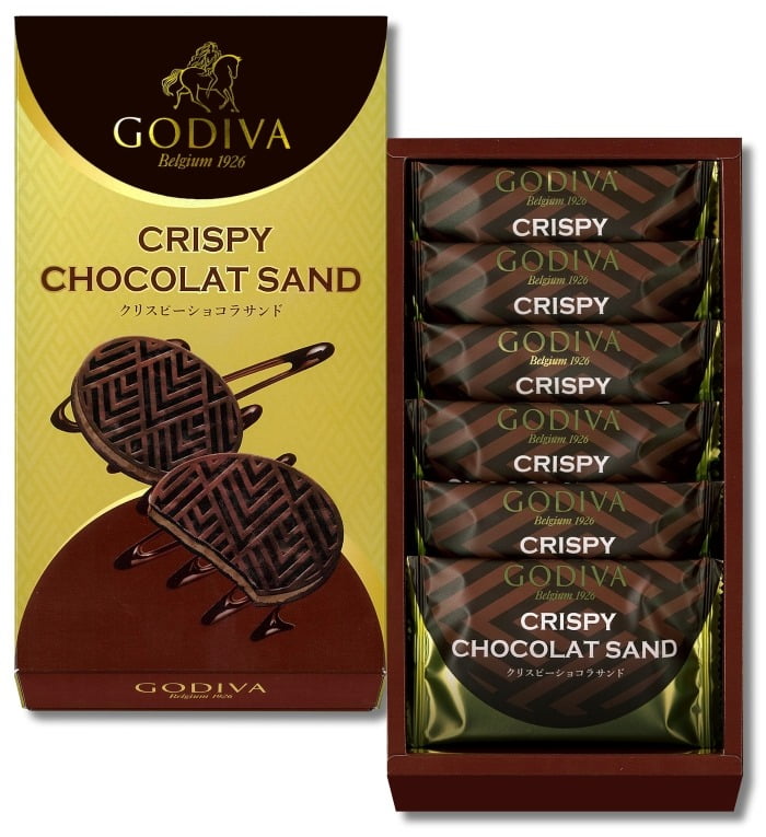 『クリスピーショコラサンド』は、ゴディバと八ツ橋「おたべ」の夢のコラボから生まれたスイーツ。サクサクと軽やかなラングドシャに、口どけの良い濃厚なチョコクリームをたっぷりサンドしています。