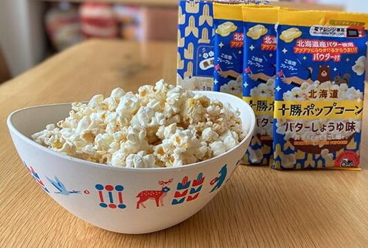 レンジで温められる!アツアツで味わえる『北海道 十勝ポップコーン バターしょうゆ味』