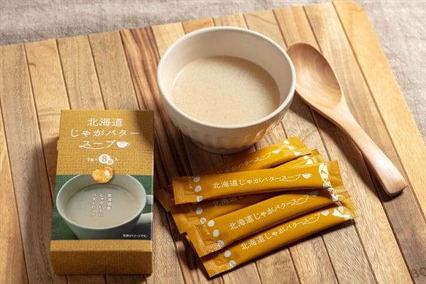 「北海道じゃがバタースープ」は、北海道産のじゃがいもとバターをふんだんに使ったスープです。寒い季節の北海道お土産として人気が高い商品で、じゃがいもの甘みとバターのコクが織り成す濃厚さを味わえます。
