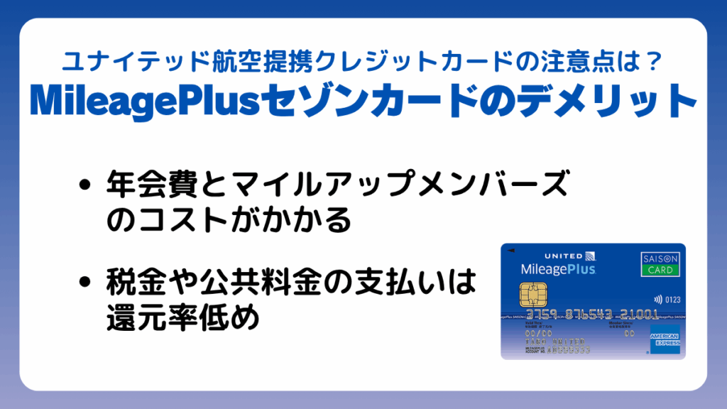 MileagePlusセゾンカードは高いマイル還元率と充実した特典が魅力ですが、利用には注意点もあります。費用面やマイル付与の上限、支払い方法による還元率の違いを理解しておくことで、より賢く使いこなせます。