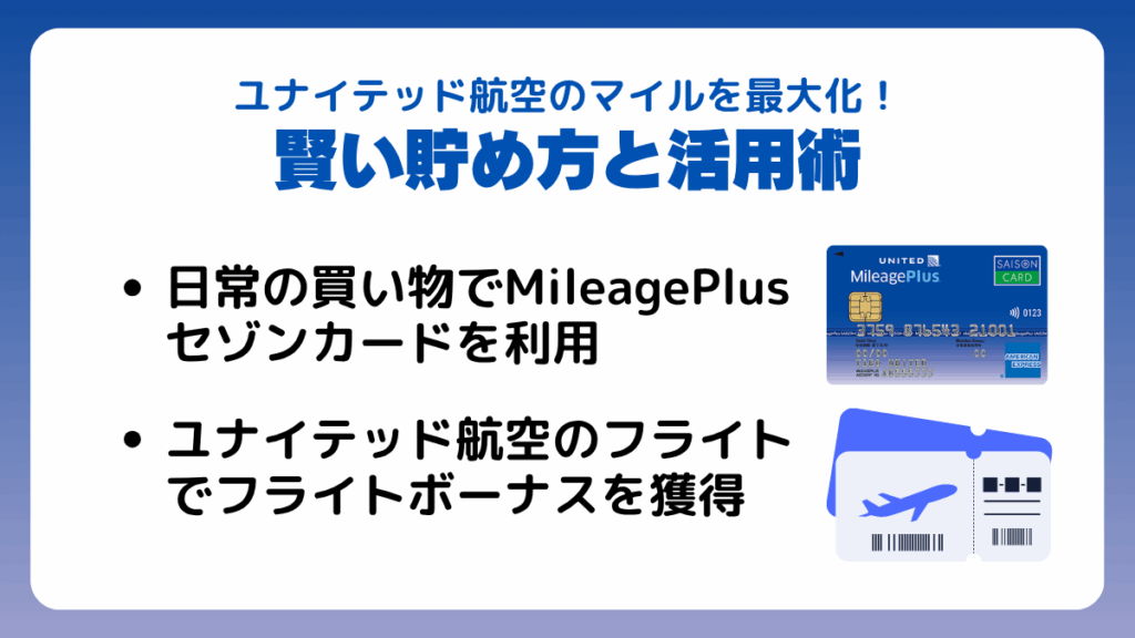 ユナイテッド航空のマイルを効率よく貯めるためには、MileagePlusセゾンカードの活用が重要です。本章では、MileagePlusセゾンカードを使って効率よくマイルを貯めるための方法と活用術を解説します。