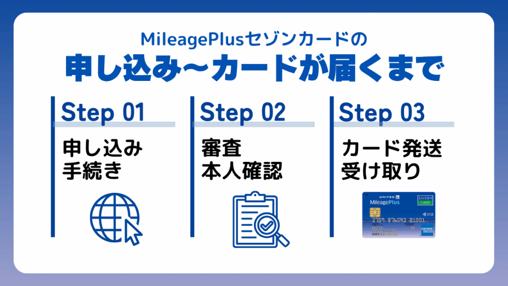 MileagePlusセゾンカードの申し込みから受け取りまでは、インターネット上で完結するため非常にスムーズです。審査や本人確認・カードの発送・受け取りに関するポイントを抑えておけば安心してカードを作成できます。