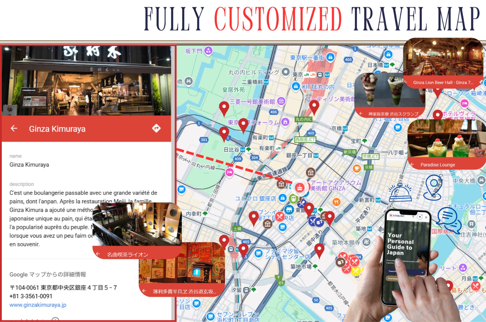 お客様の興味や好みに合わせた完全オーダーメイドマップをご提供し、コンシェルジュのサポートと合わせて短期滞在でも充実した日本探索を可能にします。