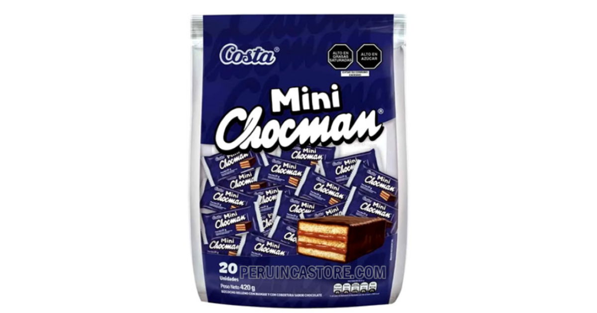 「Mini Chocman(ミニ・チョックマン)」は、ふわふわスポンジとキャラメルクリームのコンビをチョコで包んだミニケーキ。ペルー版のチョコパイ的な存在があり、しっとり食感と素朴な味わいが魅力です。