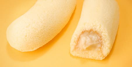 ふんわりしっとりとしたスポンジケーキの中には、本物のバナナを裏ごしして作った濃厚なバナナカスタードクリームがたっぷり詰まっています。バナナの優しい甘みとカスタードのまろやかさが絶妙に溶け合い、老若男女問わず好まれる味わいです。