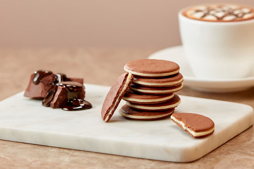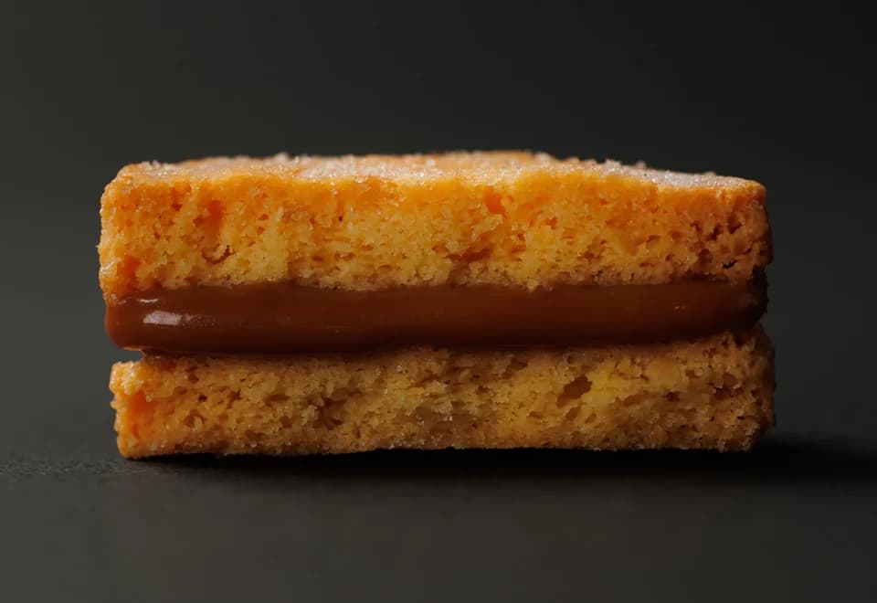 ホエイを煮詰めて作るブラウンチーズは、ほんのりキャラメルのような風味と深いコクが特徴です。このチーズとホワイトチョコを合わせたなめらかなクリームを、アーモンドパウダー入りの香ばしいクッキーでサンド。甘みと塩気が絶妙に交わる大人の味わいで、ワインやコーヒーとの相性も抜群です。
