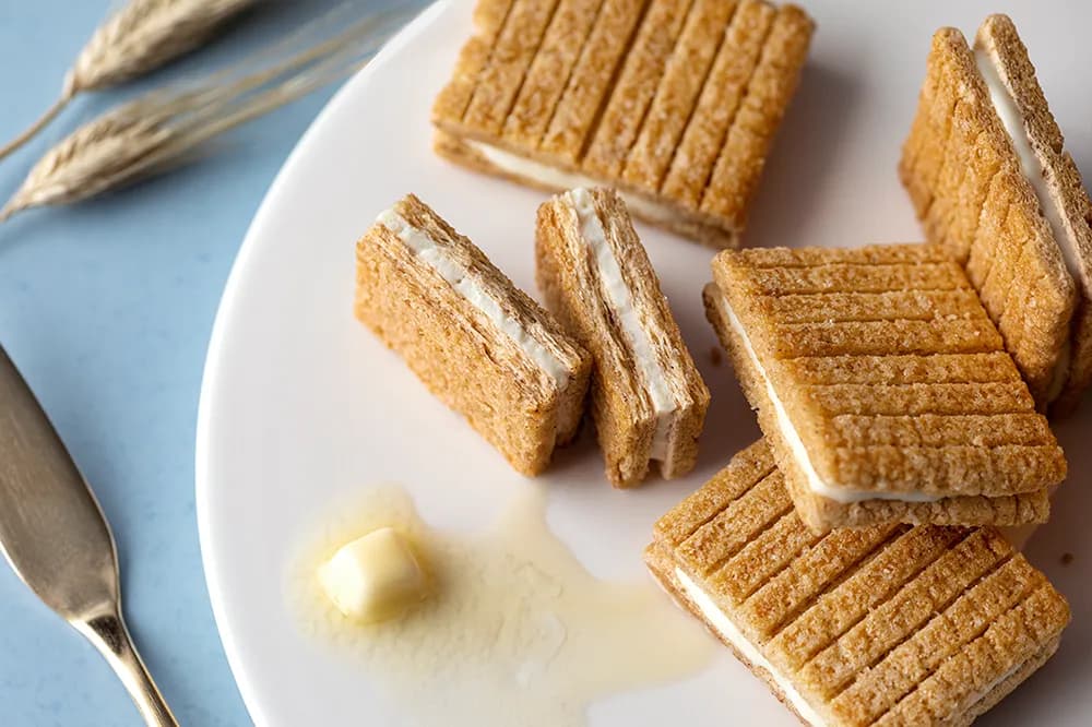 『フェルム ラ・テール 美瑛』の「バターチーズサンド」は、北海道美瑛町の人気洋菓子店が作る、チーズとバターの魅力を存分に味わえる贅沢なお菓子です。