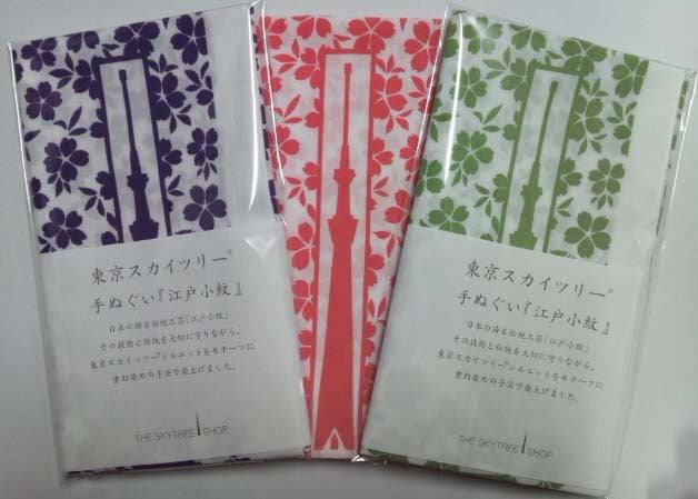 東京スカイツリー手ぬぐいは、中学生おみやげコンテストで墨田区中学生がデザインした手ぬぐいです。重ね染めという技術を使い、東京スカイツリーの公式手ぬぐいとして販売されています。