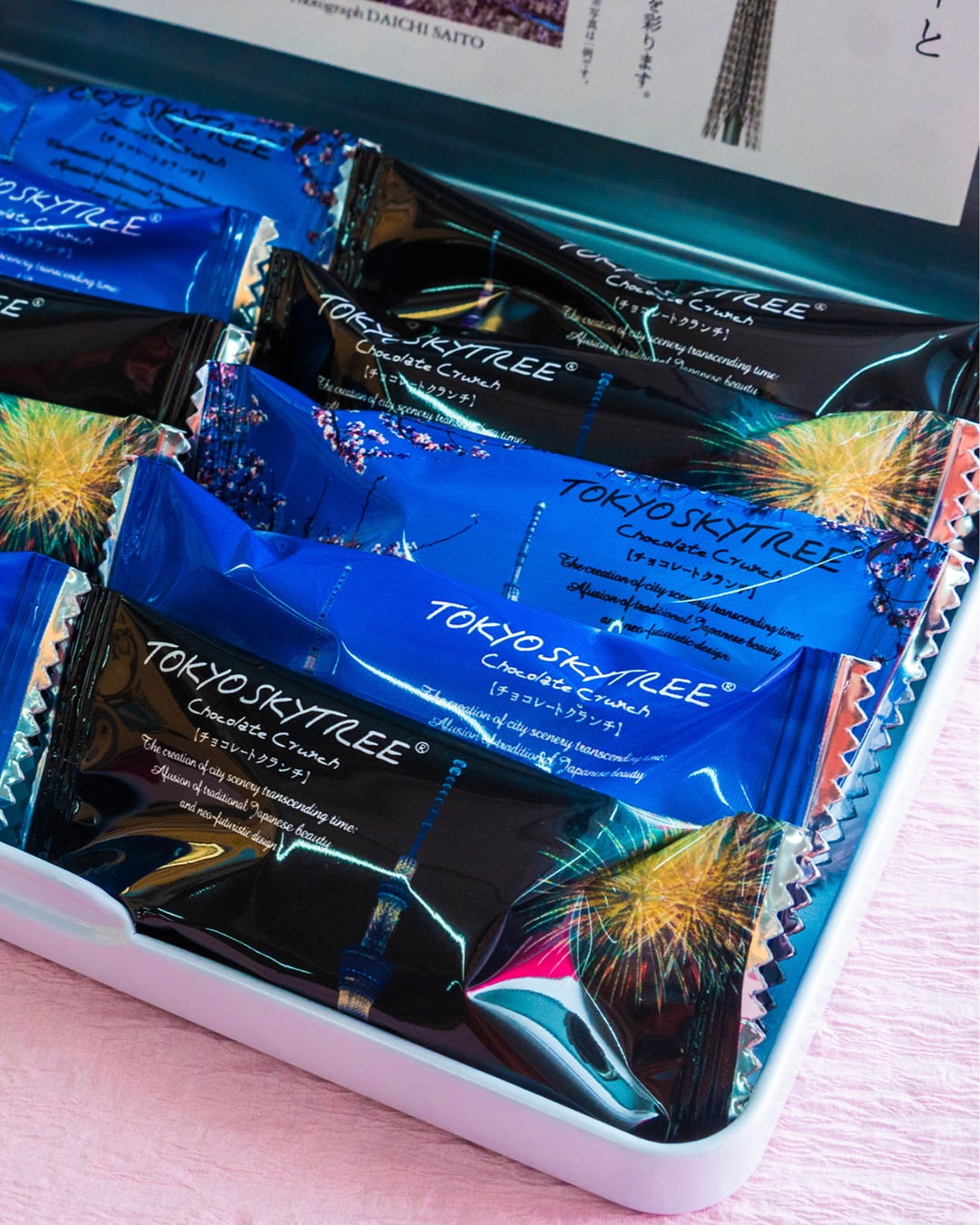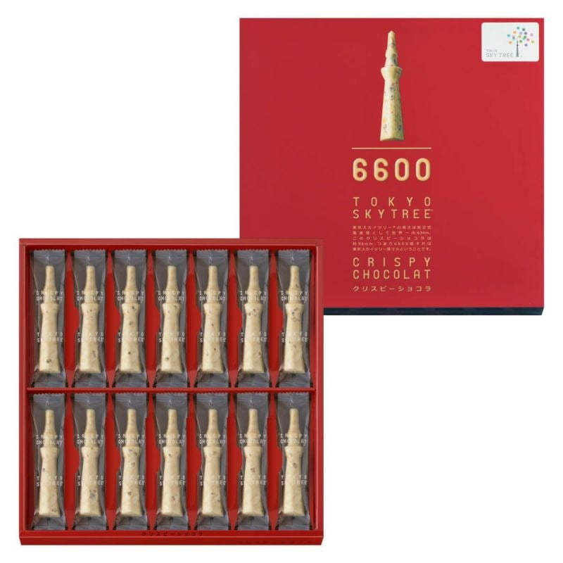 サクサクのシリアルにおしゃれなホワイトチョコをコーティングしたチョコレート菓子です。甘酸っぱいクランベリーが色と味のアクセントになっており、東京スカイツリーの形をしているのもポイントとなっています。